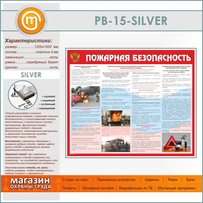 Стенд «Пожарная безопасность на автотранспорте» (PB-15-SILVER) в Красноярске купить