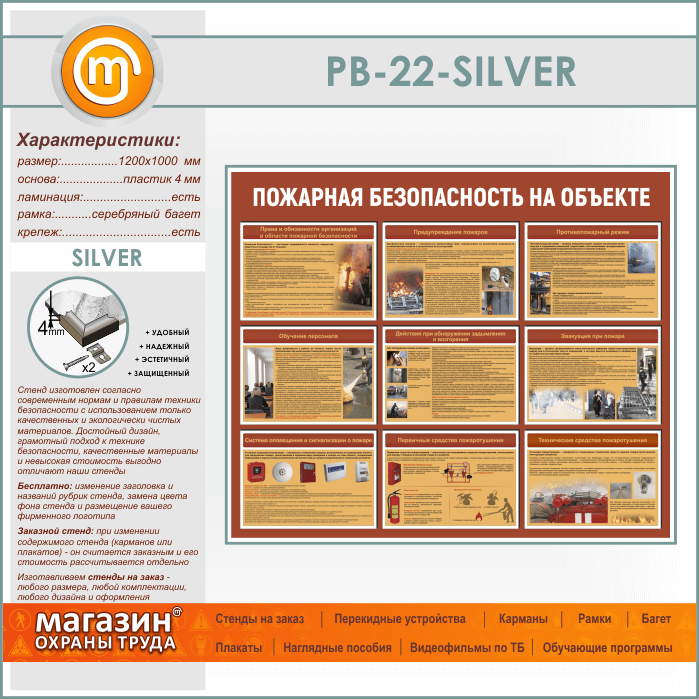 Стенд «Пожарная безопасность на объекте» (PB-22-SILVER) в Красноярске купить