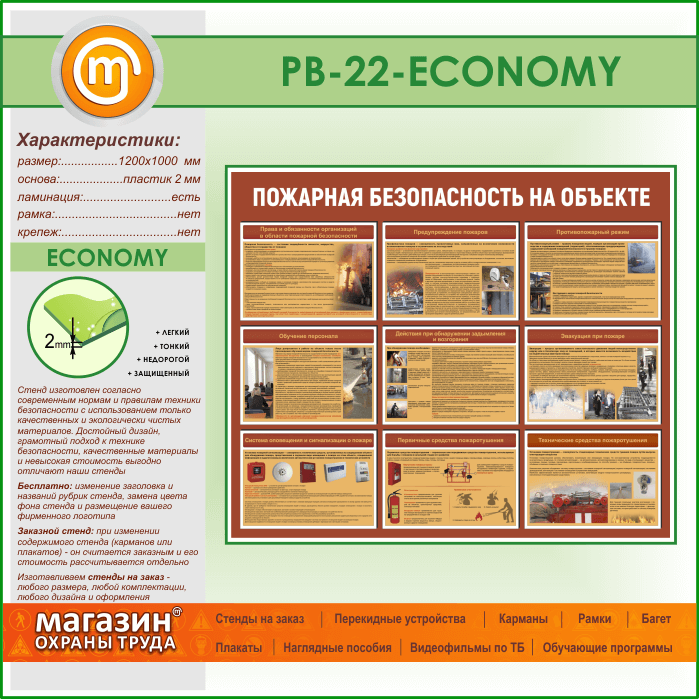 Стенд «Пожарная безопасность на объекте» (PB-22-ECONOMY) в Красноярске купить