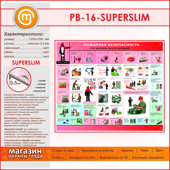 Стенд «Пожарная безопасность. Это должен знать каждый» (PB-16-SUPERSLIM) в Красноярске купить