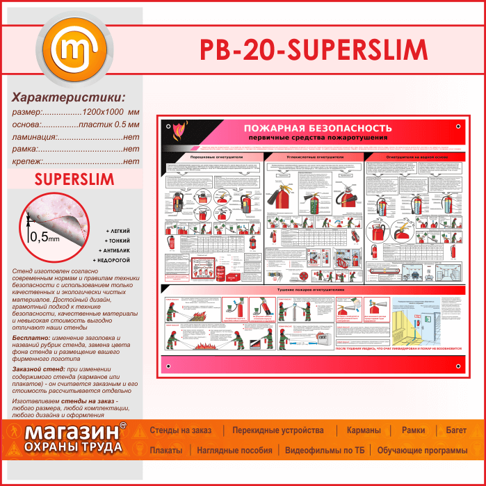 Стенд «Пожарная безопасность. Первичные средства пожаротушения» (PB-20-SUPERSLIM) в Красноярске купить