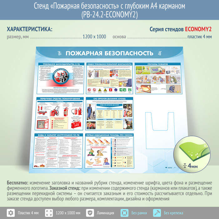 Стенд «Пожарная безопасность» с глубоким А4 карманом (PB-24.2-ECONOMY2) в Красноярске купить