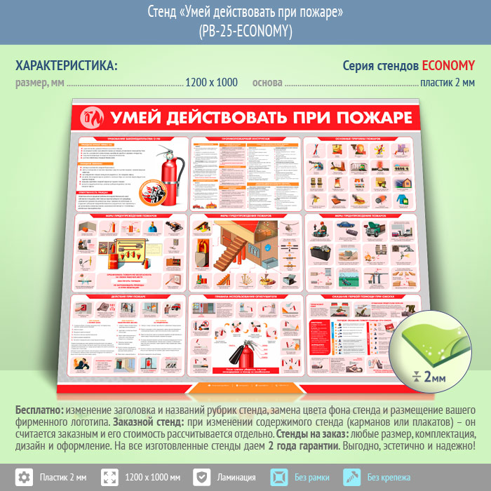 Стенд «Умей действовать при пожаре» (PB-25-ECONOMY) в Красноярске купить
