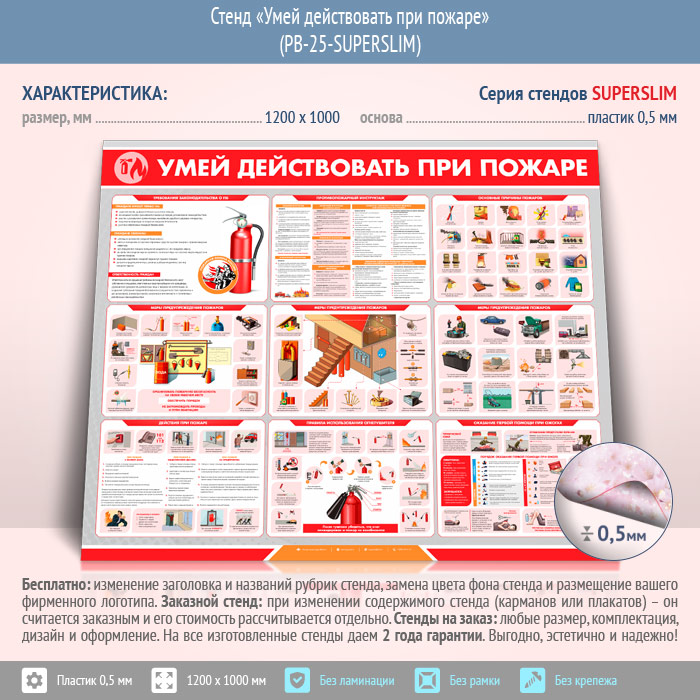 Стенд «Умей действовать при пожаре» (PB-25-SUPERSLIM) в Красноярске купить