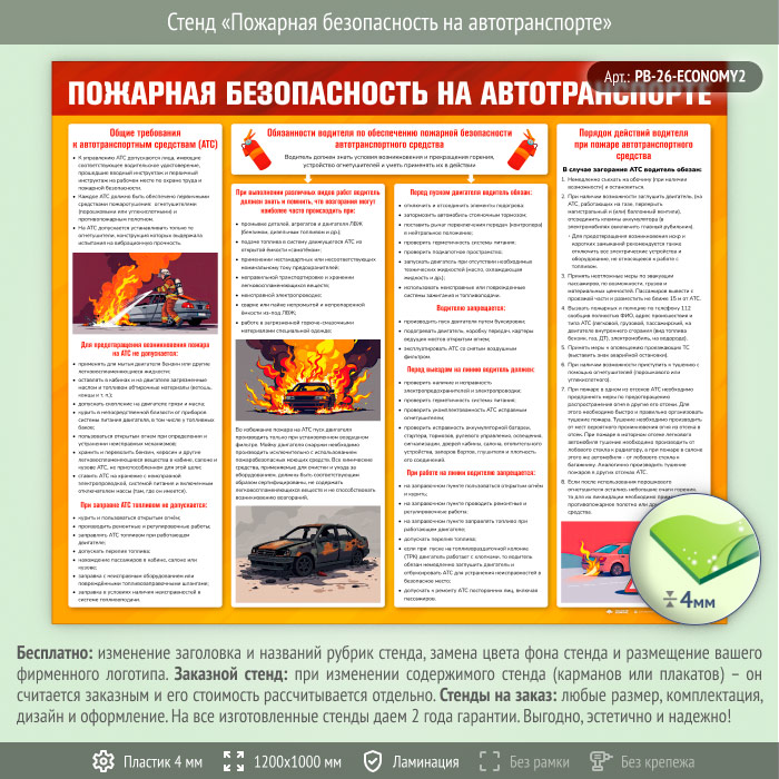 Стенд «Пожарная безопасность на автотранспорте» (PB-26-ECONOMY2) в Красноярске купить