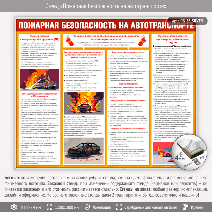 Стенд «Пожарная безопасность на автотранспорте» (PB-26-SILVER) в Красноярске купить