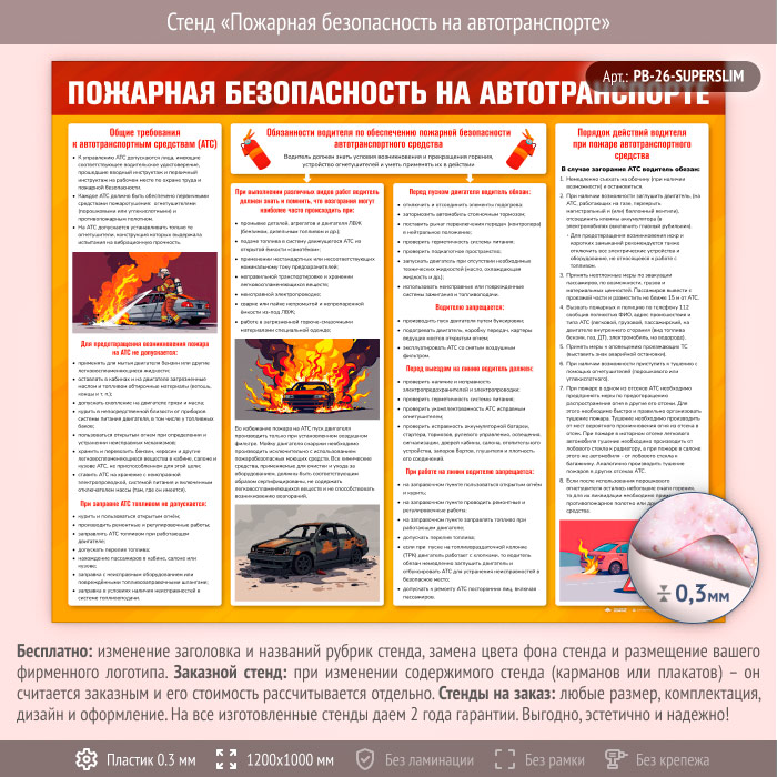Стенд «Пожарная безопасность на автотранспорте» (PB-26-SUPERSLIM) в Красноярске купить