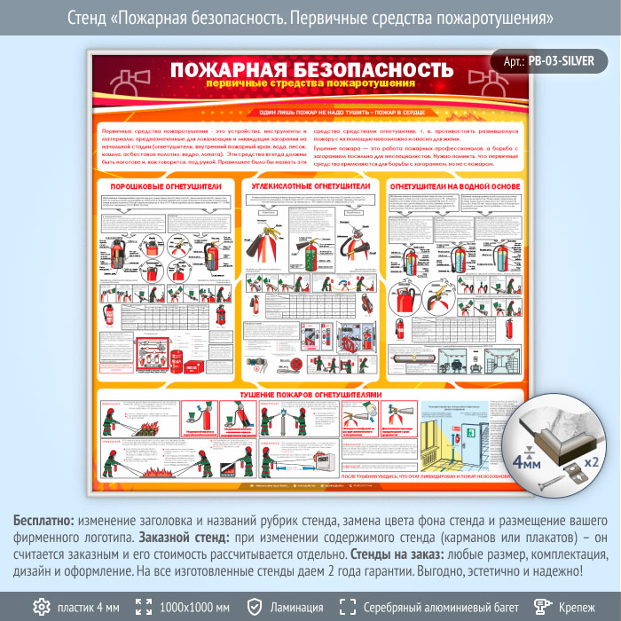 Стенд «Пожарная безопасность. Первичные средства пожаротушения» (PB-03-SILVER) в Красноярске купить