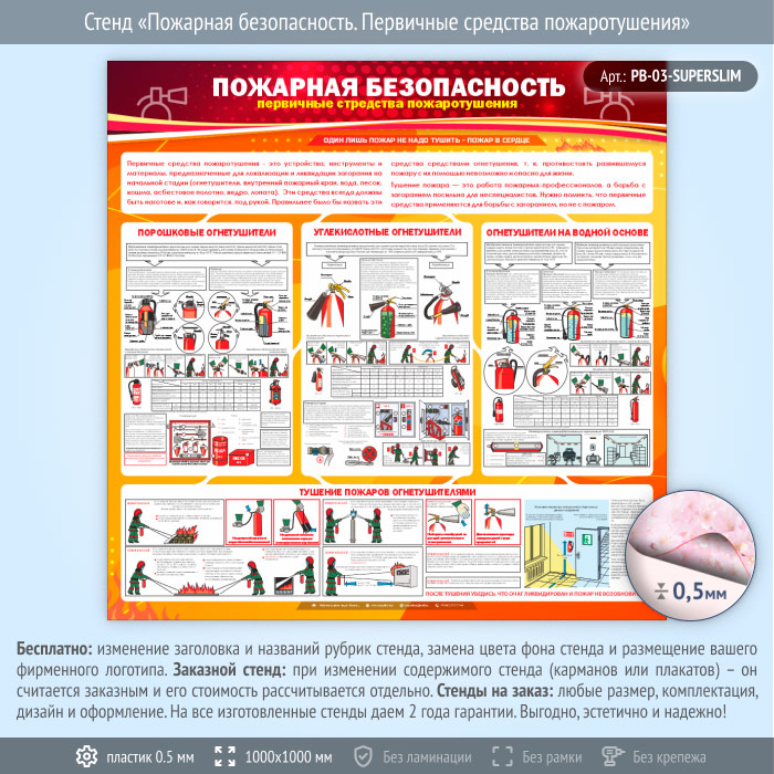 Стенд «Пожарная безопасность. Первичные средства пожаротушения» (PB-03-SUPERSLIM) в Красноярске купить