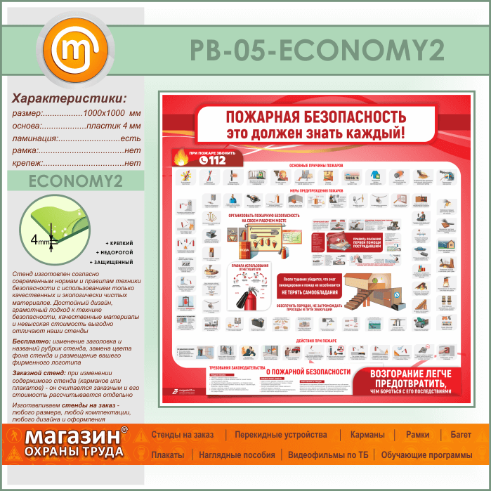 Стенд «Пожарная безопасность. Это должен знать каждый» (PB-05-ECONOMY2) в Красноярске купить