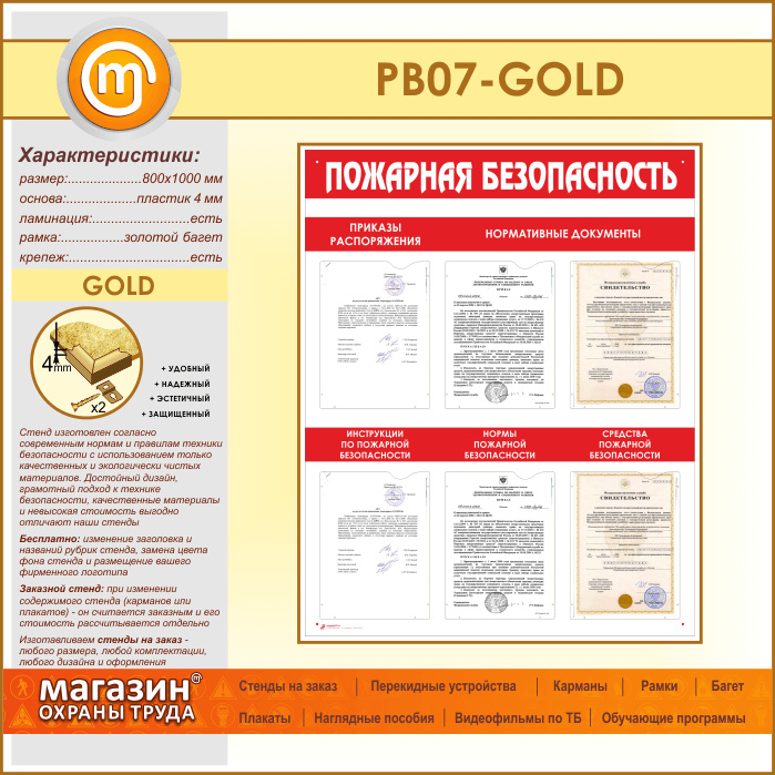 Стенд «Пожарная безопасность» с 6 карманами (PB-07-GOLD) в Красноярске купить