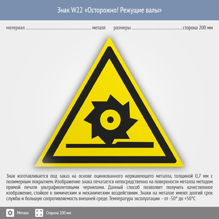 Знак W22 «Осторожно! режущие валы» (металл, сторона 200 мм) в Красноярске купить