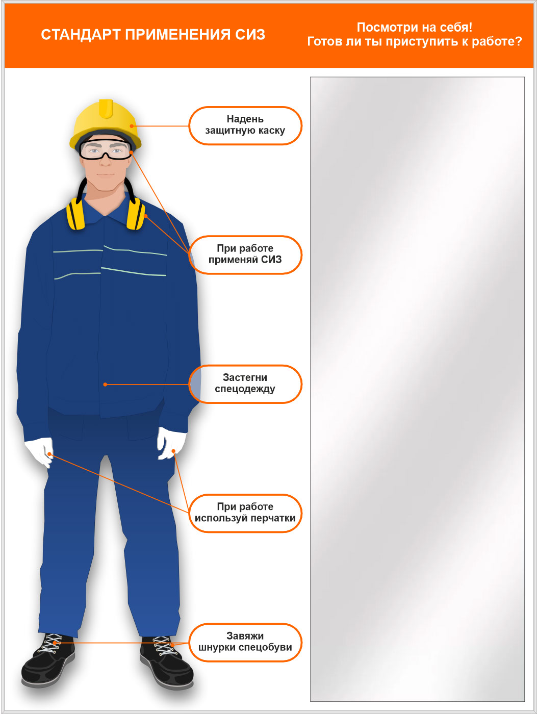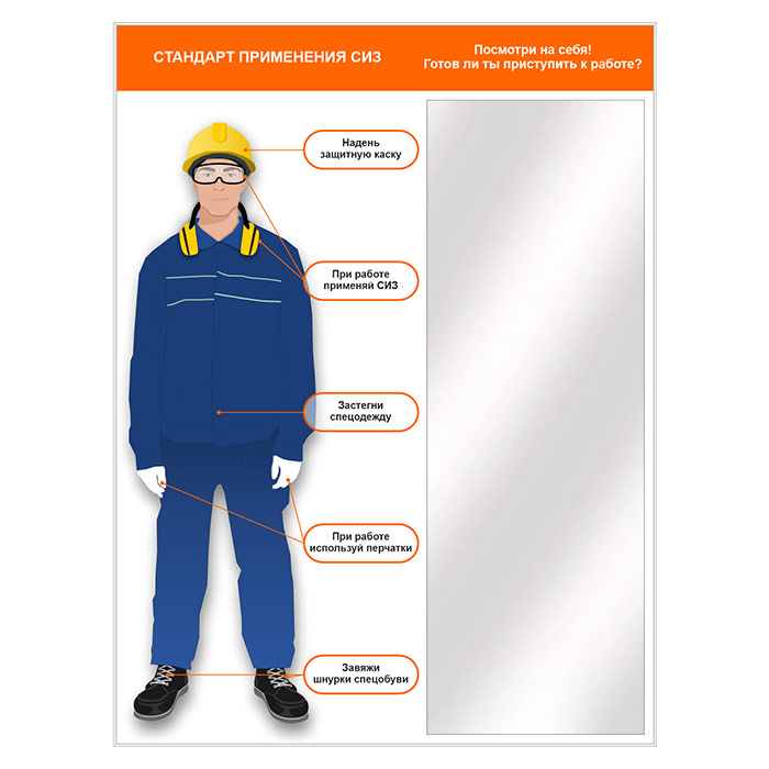Стенд для демонстрации применения СИЗ с зеркалом, 1500х2000 мм в серебряном багете (СПС-01.2-С) в Красноярске купить