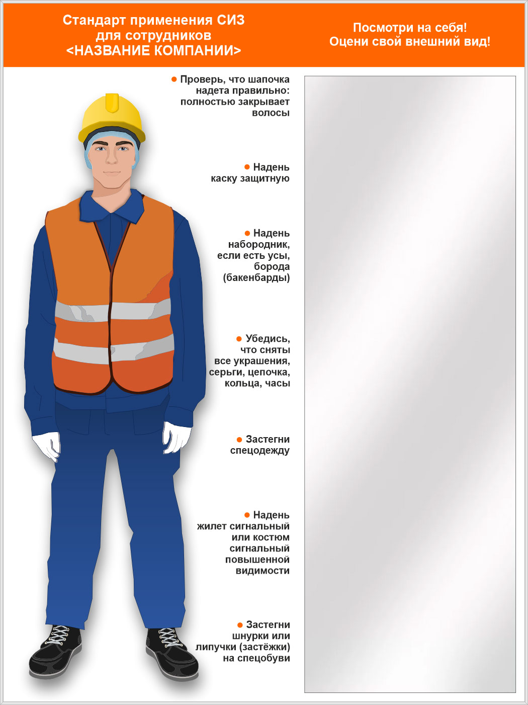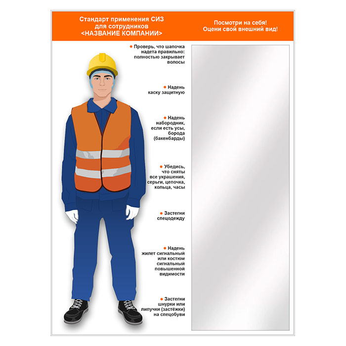 Стенд для демонстрации применения СИЗ с зеркалом, 1500х2000 мм в серебряном багете (СПС-02.2-С) в Красноярске купить