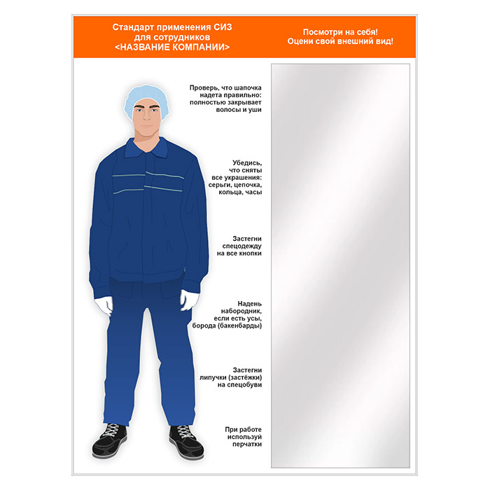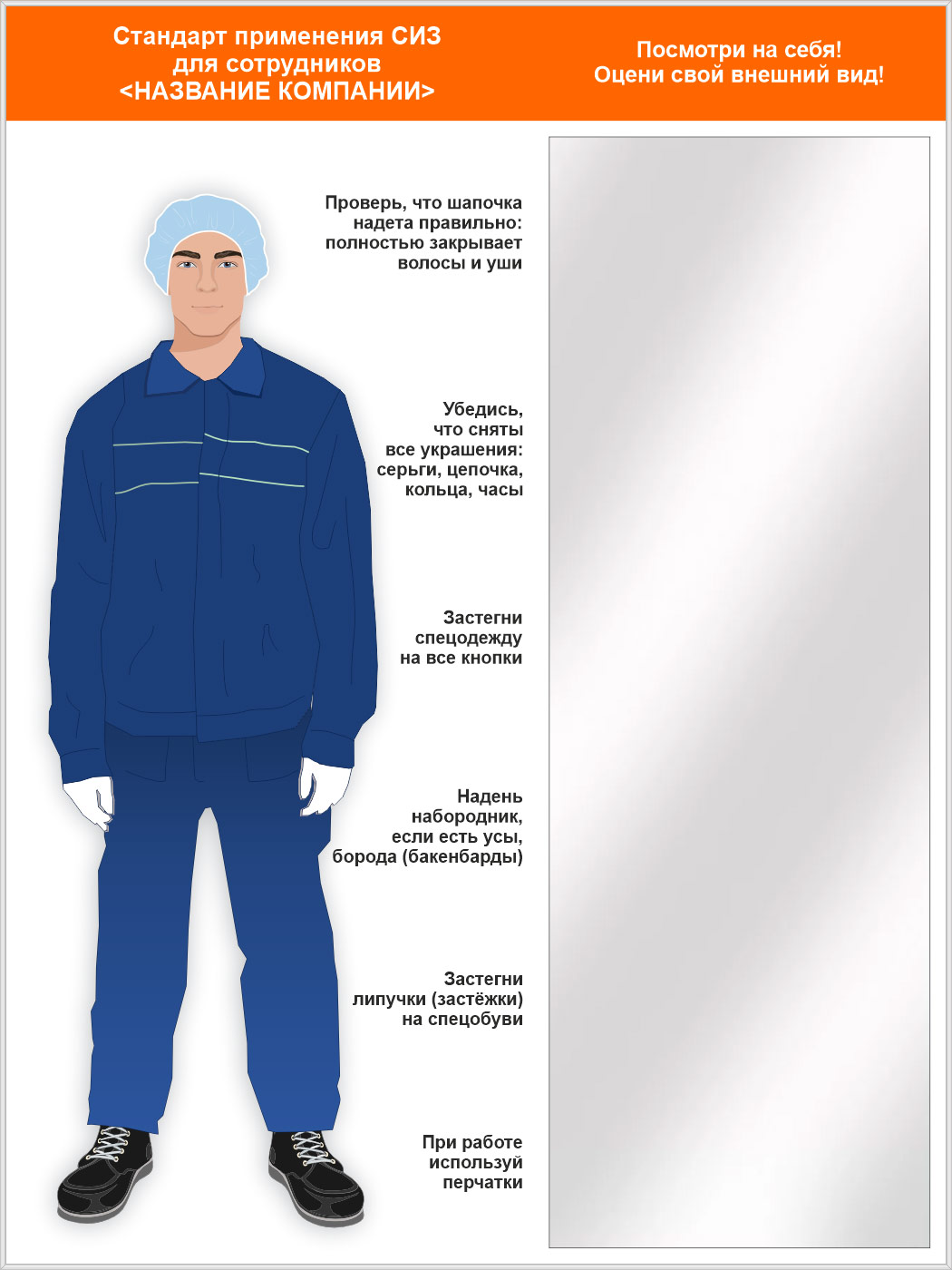 Стенд для демонстрации применения СИЗ с зеркалом, 1500х2000 мм в серебряном багете (СПС-03.2-С) в Красноярске купить