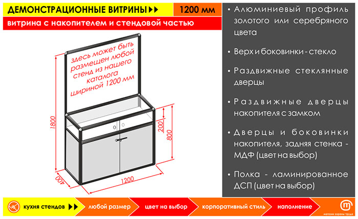 Витрина с накопителем и стендовой частью, 1200 мм в Красноярске купить