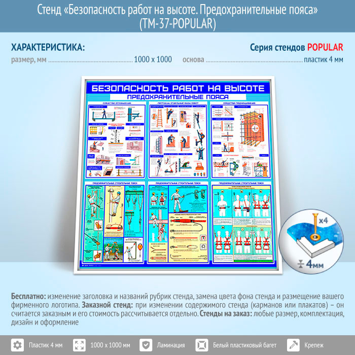 Стенд «Безопасность работ на высоте. Предохранительные пояса» (TM-37)
