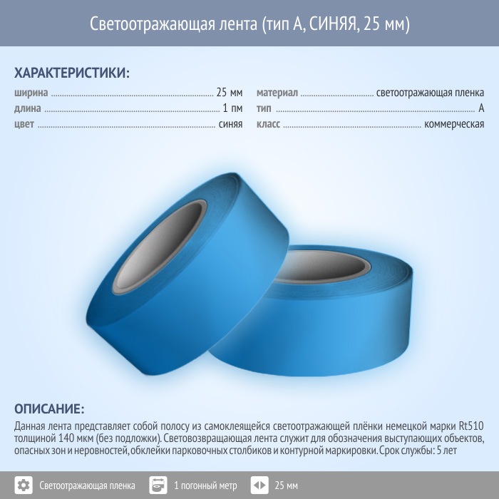 Светоотражающая однородная лента (тип А, СИНЯЯ, 25 мм х 1 п.м.) в Красноярске купить