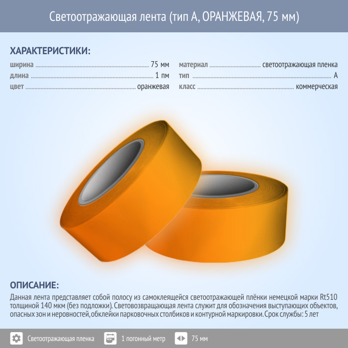 Светоотражающая однородная лента (тип А, ОРАНЖЕВАЯ, 75 мм х 1 п.м.) в Красноярске купить