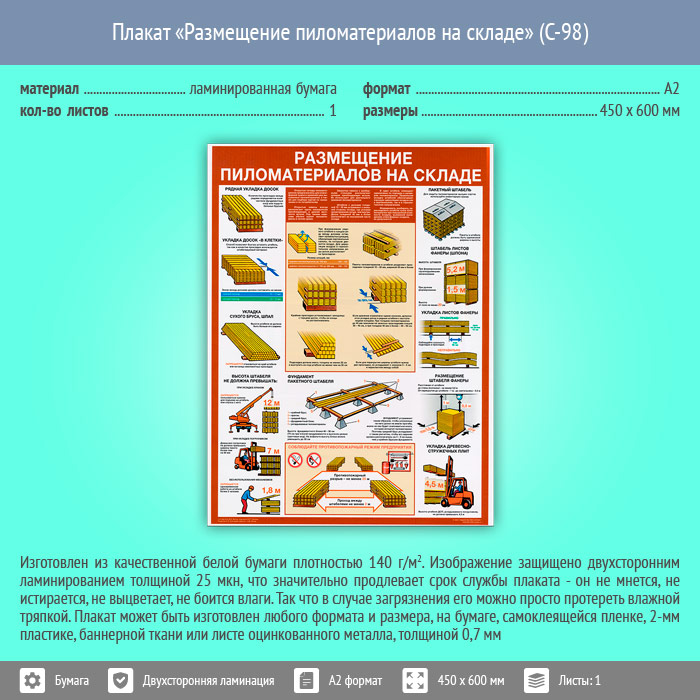 Плакат «Размещение пиломатериалов на складе» (С-98, ламинированная бумага, А2, 1 лист) в Красноярске купить