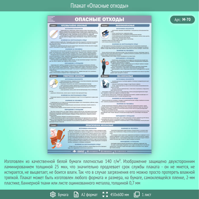 Плакат «Опасные отходы» (М-70, ламинированная бумага, А2, 1 лист) в Красноярске купить