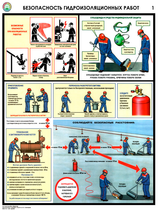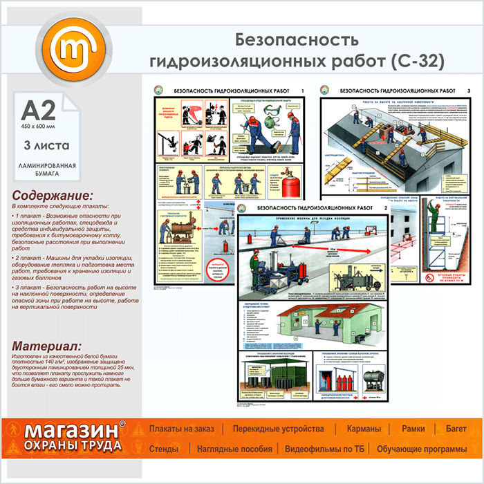 Плакаты «Безопасность гидроизоляционных работ» (С-32, ламинированная бумага, А2, 3 листа) в Красноярске купить