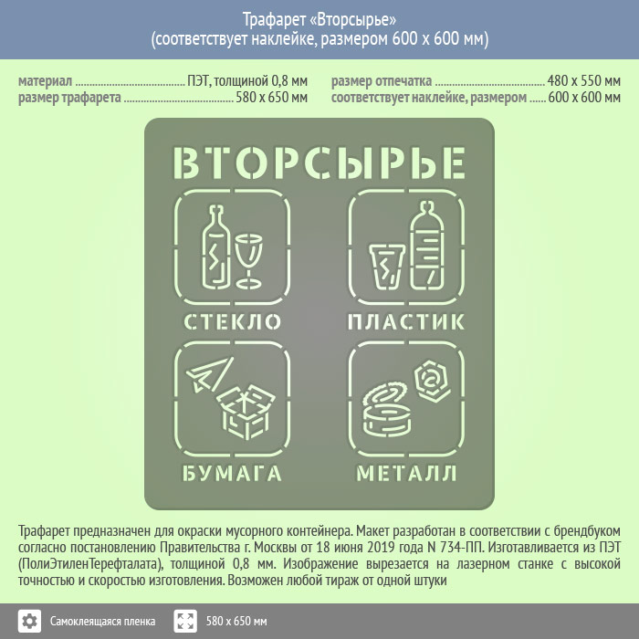 Трафарет «Вторсырье» (соответствует наклейке, размером 600х600 мм) в Красноярске купить