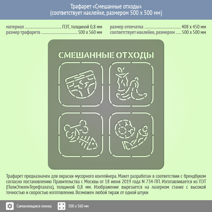 Трафарет «Смешанные отходы» (соответствует наклейке, размером 500х500 мм) в Красноярске купить