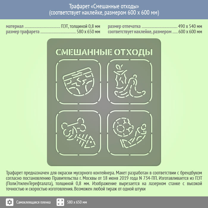 Трафарет «Смешанные отходы» (соответствует наклейке, размером 600х600 мм) в Красноярске купить