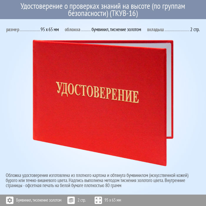 Бланк удостоверения о проверках знаний на высоте (по группам безопасности) (ТКУВ-16) в Красноярске купить