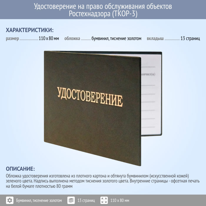 Бланк удостоверения на право обслуживания объектов Ростехнадзора (ТКОР-3) в Красноярске купить