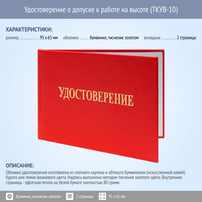 Бланк удостоверения о допуске к работе на высоте (ТКУВ-10) в Красноярске купить