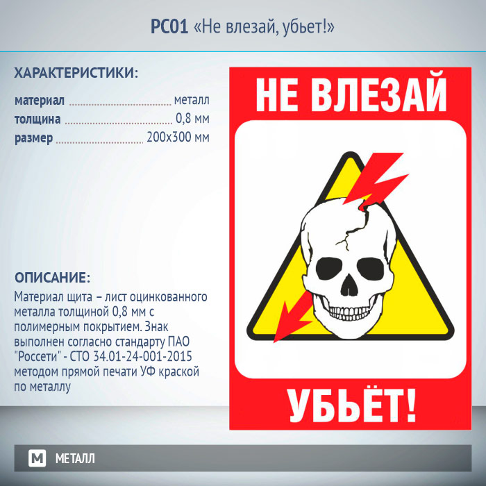 Знак «Не влезай, убьет!», РС01 (металл, 200х300 мм) в Красноярске купить