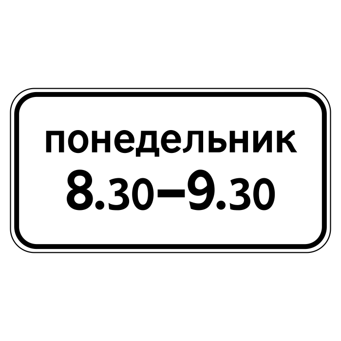Дорожный знак 8.5.7 «Время действия» (металл 0,8 мм, II типоразмер: 350х700 мм, С/О пленка: тип В алмазная) в Красноярске купить
