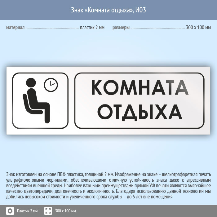 Знак «Комната отдыха», И03 (пластик, 300х100 мм) в Красноярске купить