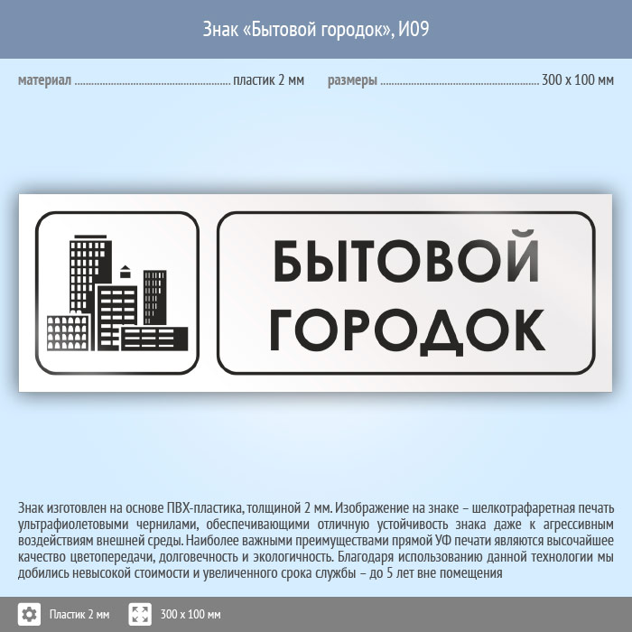 Знак «Бытовой городок», И09 (пластик, 300х100 мм) в Красноярске купить