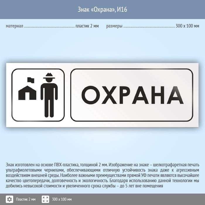 Знак «Охрана», И16 (пластик, 300х100 мм) в Красноярске купить