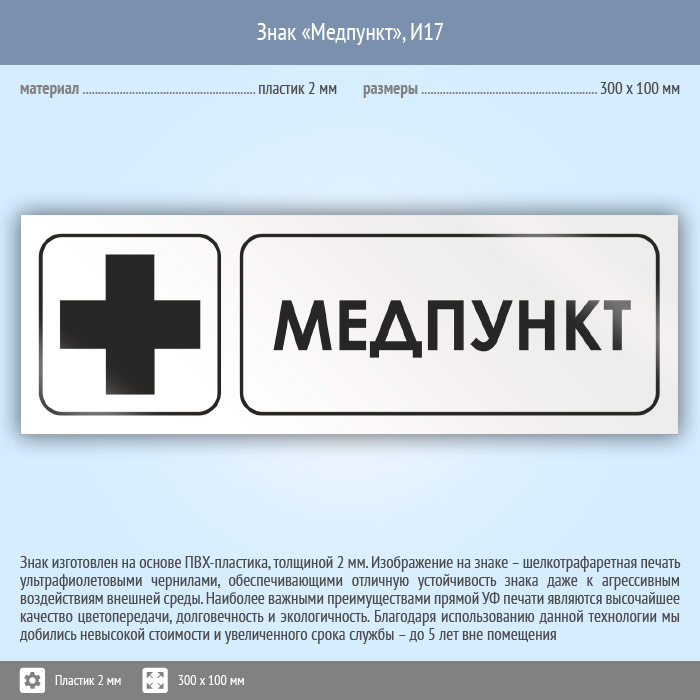 Знак «Медпункт», И17 (пластик, 300х100 мм) в Красноярске купить