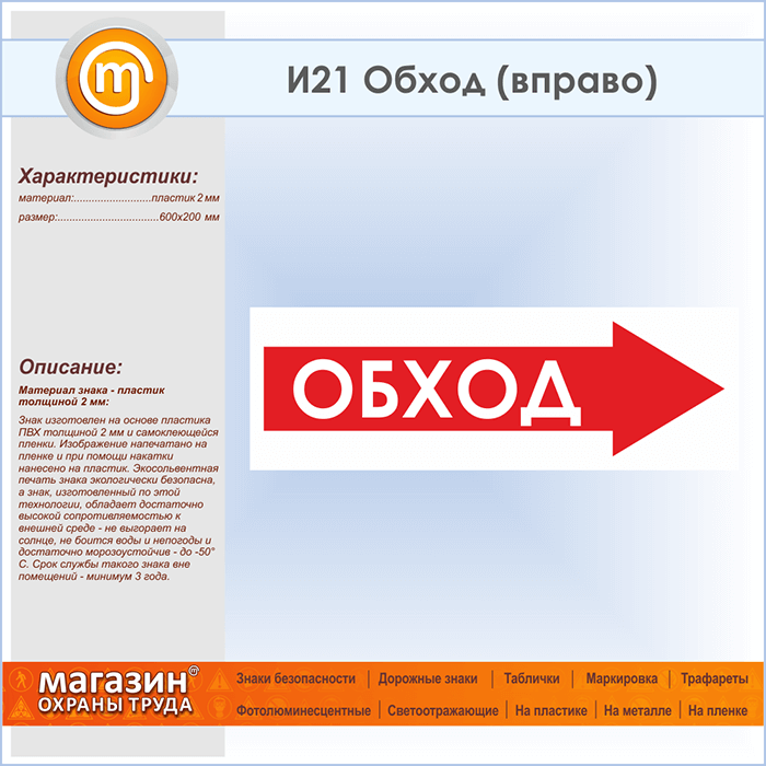 Знак «Обход (вправо)», И21 (пластик, 600х200 мм) в Красноярске купить