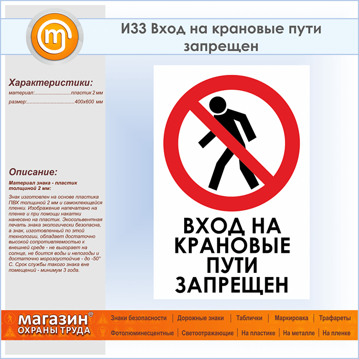 Знак «Вход на крановые пути запрещен», И33 (пластик, 400х600 мм) в Красноярске купить