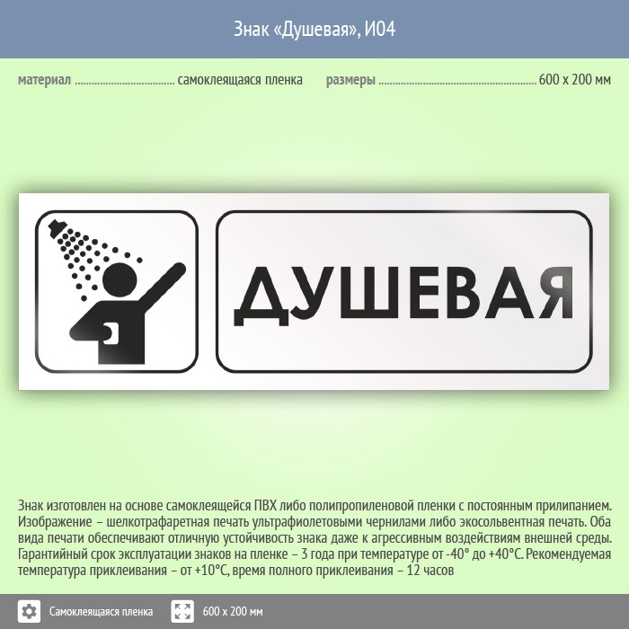 Знак «Душевая», И04 (пленка, 600х200 мм) в Красноярске купить
