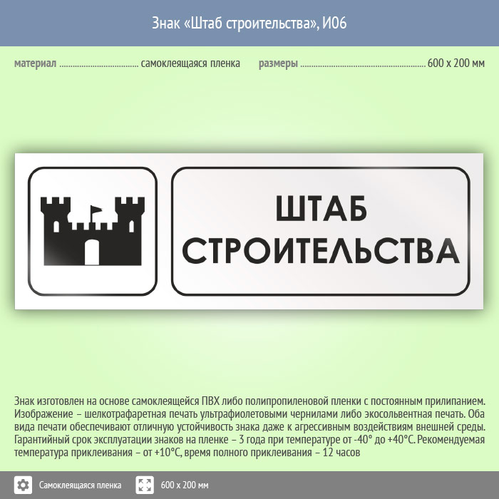 Знак «Штаб строительства», И06 (пленка, 600х200 мм) в Красноярске купить