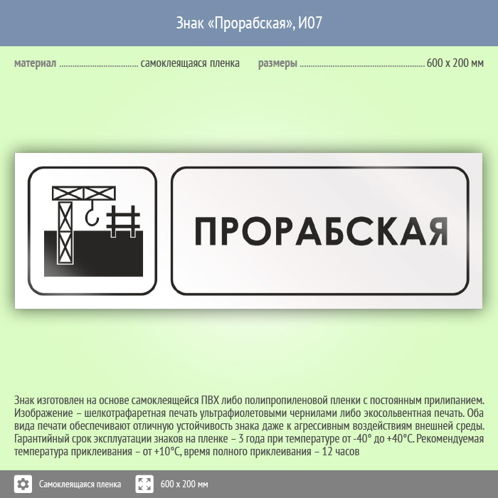 Знак «Прорабская», И07 (пленка, 600х200 мм) в Красноярске купить