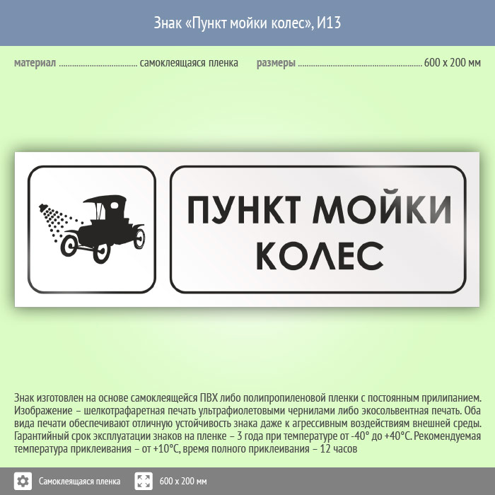 Знак «Пункт мойки колес», И13 (пленка, 600х200 мм) в Красноярске купить