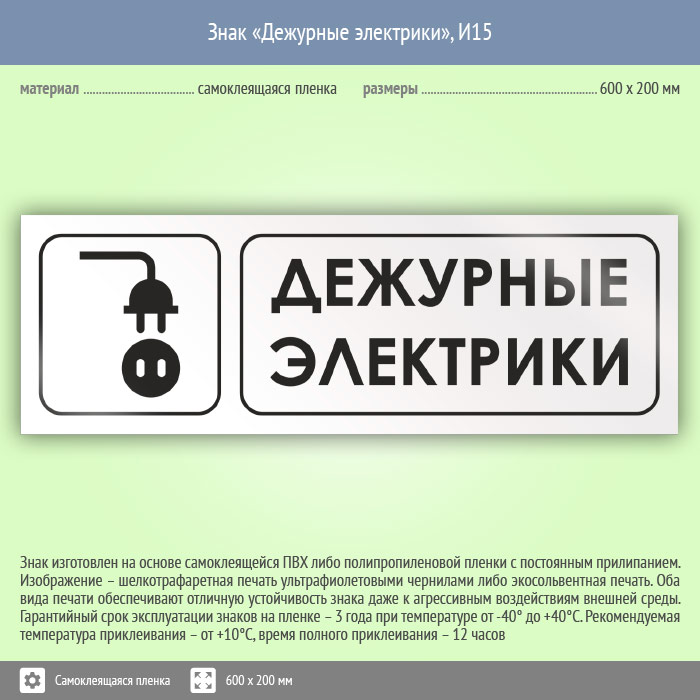 Знак «Дежурные электрики», И15 (пленка, 600х200 мм) в Красноярске купить