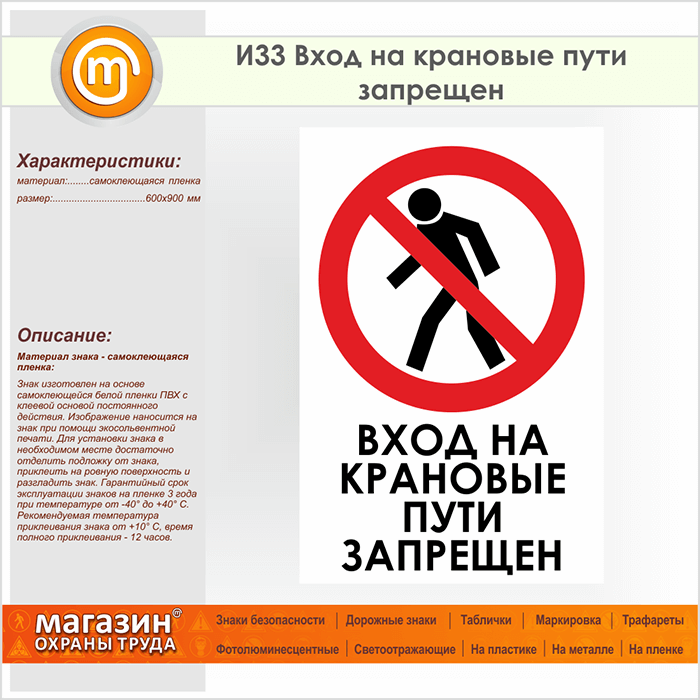 Знак «Вход на крановые пути запрещен», И33 (пленка, 600х900 мм) в Красноярске купить