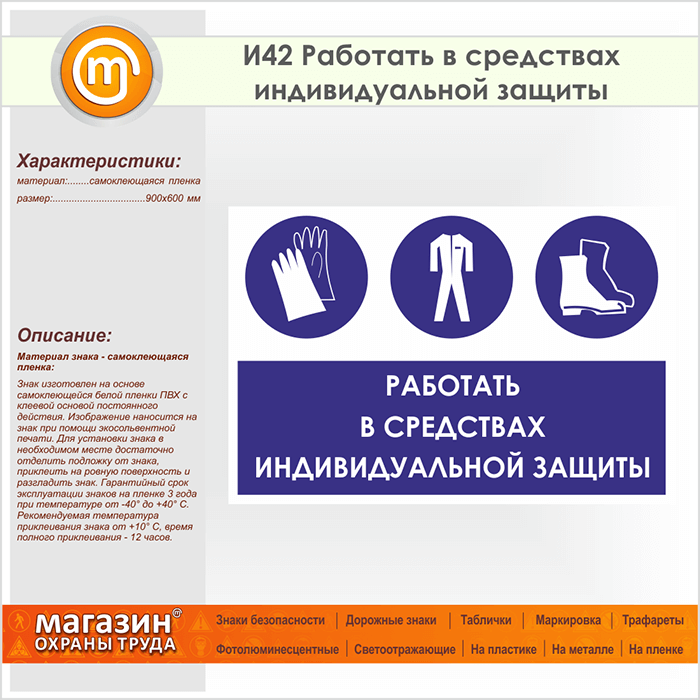 Знак «Работать в средствах индивидуальной защиты», И42 (пленка, 900х600 мм) в Красноярске купить