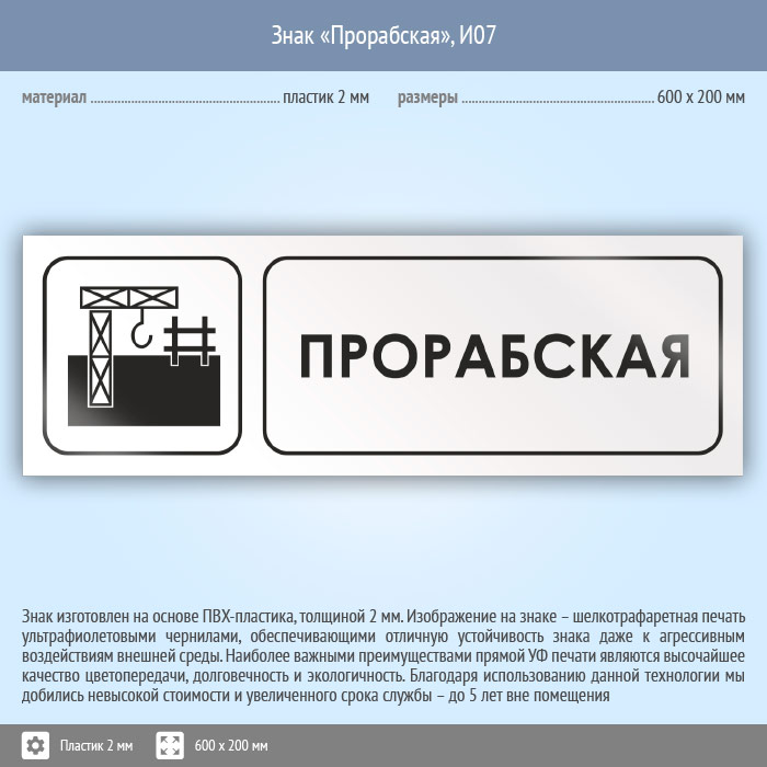 Знак «Прорабская», И07 (пластик, 600х200 мм) в Красноярске купить