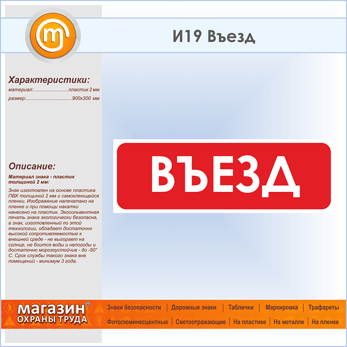 Знак «Въезд», И19 (пластик, 900х300 мм) в Красноярске купить
