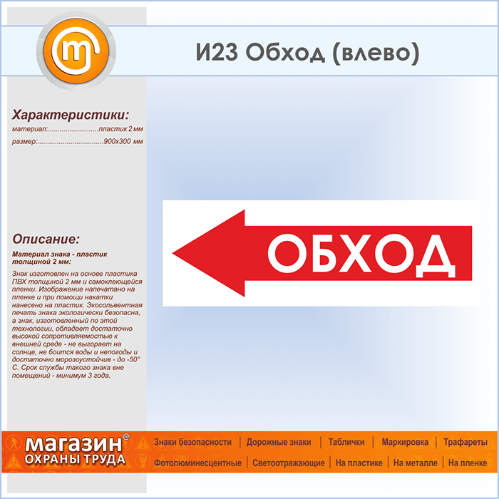 Знак «Обход (влево)», И23 (пластик, 900х300 мм) в Красноярске купить